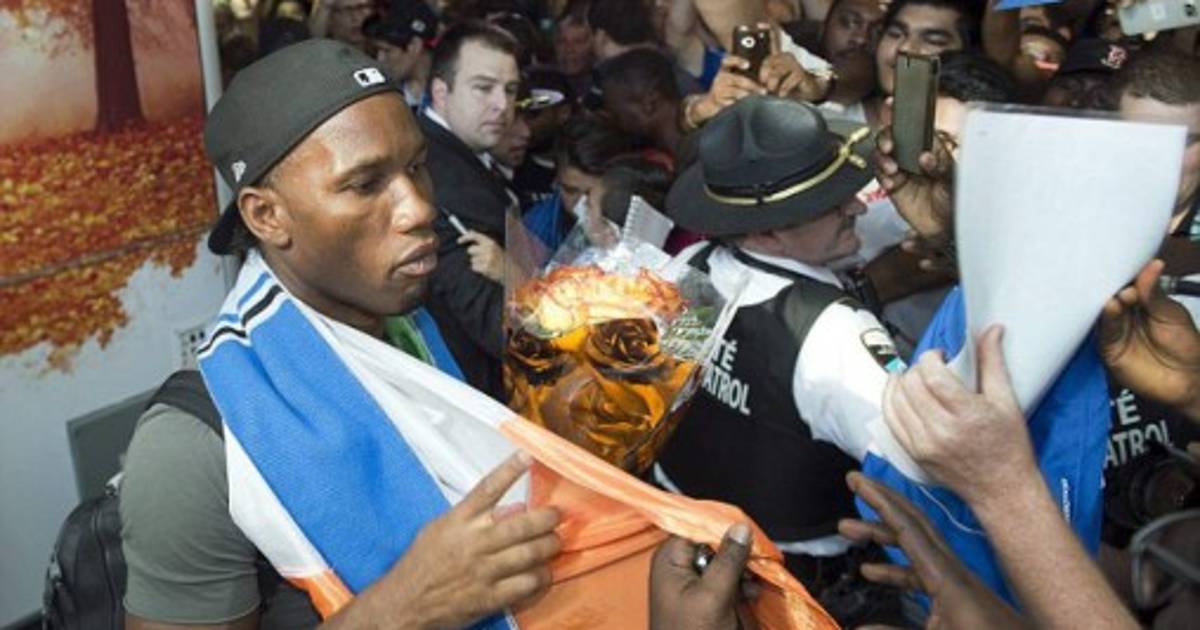 Nada más salir de la zona de llegadas en el aeropuerto de Montreal, Drogba se encontró con cientos de seguidores del equipo que rebasaron la zona de seguridad con el deseo de tocar a su nuevo ídolo deportivo a su llegada a territorio canadiense.
