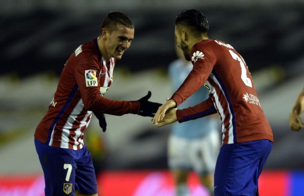 La solidez defensiva del Atlético de Madrid y dos goles, marcados por el francés Antoine Griezmann, que firmó otra gran actuación, y el belga Yannick Ferreira Carrasco en la segunda parte, destrozaron al Celta de Vigo, que encadena su tercera derrota consecutiva en Liga, y permiten al equipo madrileño cerrar la primera vuelta en lo alto de la clasificación.