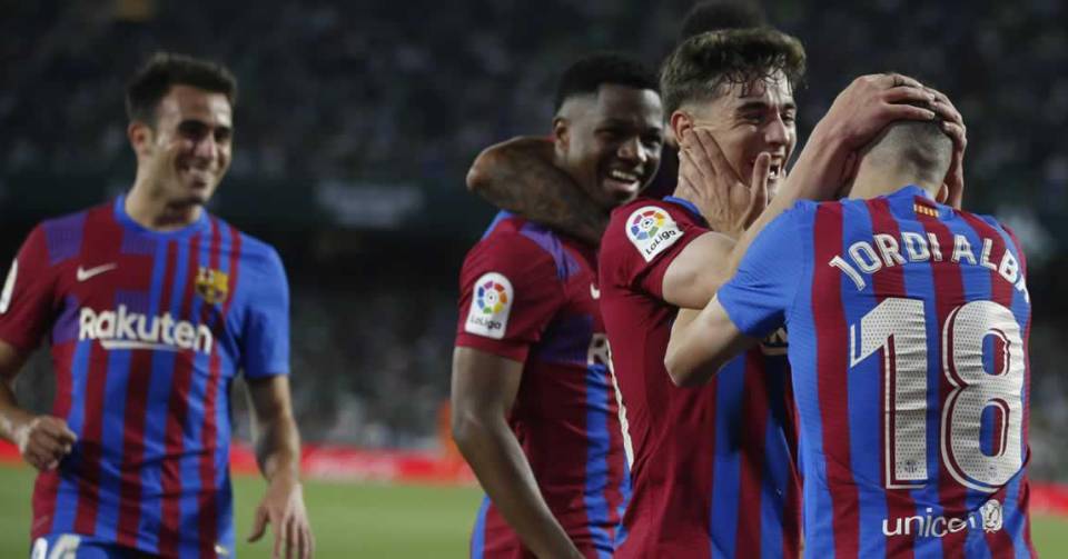 Un golazo de volea de Jordi Alba en la prolongación del partido (1-2) desniveló el empate con el que parecía que iba a acabar el Betis-Barcelona disputado en el Benito Villamarín, donde el conjunto azulgrana certificó matemáticamente su clasificación para la próxima edición de la Champions y deja a los verdiblancos tocados en su intento de entrar en esa zona de privilegio cuando quedan tres jornadas para que concluya la Liga Española.