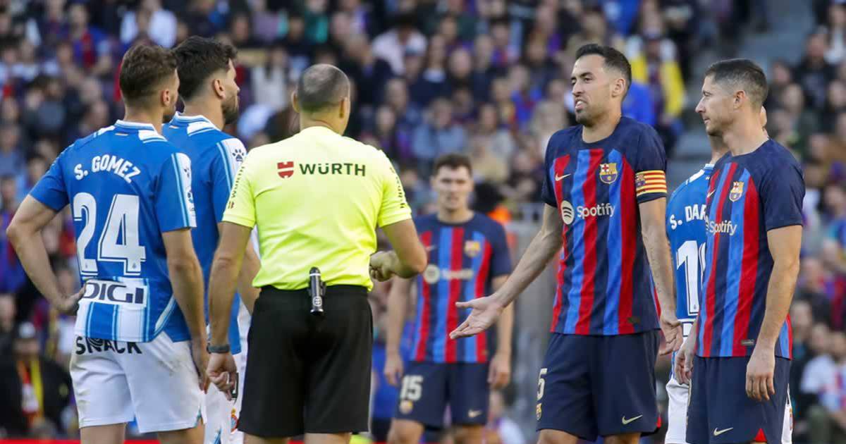 Mateu Lahoz expulsaba a Jordi Alba, en cuatro minutos, por protestar, y también a Vinicius de Souza poco después, también por doble amonestación. Y el VAR corregía su decisión de echar por roja directa a Leandro Cabrera por una inexistente agresión a Lewandowski.