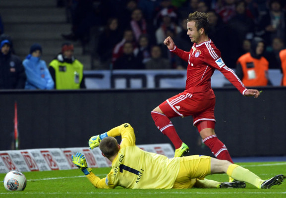 El colombiano Adrián Ramos descontó de penalti para el Hertha en el 66 pero luego, en el 79, Franck Ribery hizo el tercero para el Bayern a pase de Götze.