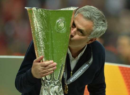 Mourinho le dio su respectivo beso a la Copa. FOTO EFE.
