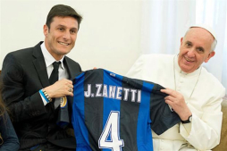 El último obsequio que recibió el pontífice fue de Javier Zanneti, quien le dio su camiseta del Inter de Milán. Según explicó el club italiano, Zanetti y Francisco trataron “temas fundamentales en el difícil trabajo que hace Inter Campus (una fundación de la entidad deportiva)”.