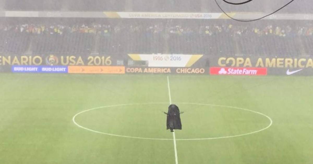 Justo al finalizar en el Soldier Field Stadium la primera mitad del encuentro que Chile le gana a Colombia 2-0, se presentó la tormenta con relámpagos y truenos, mientras nubes negras envolvían al estadio.