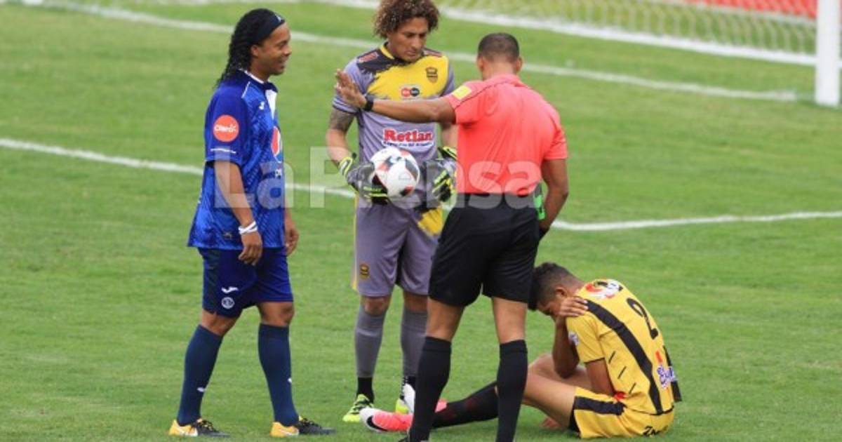 La presencia de Ronaldinho llenó de satisfacción a medio país el pasado domingo, sin embargo para uno de los integrantes del plantel de Real España representó no iniciar el torneo Apertura merced a los casi dos meses que estará fuera de acción. La víctima del choque de 'exhibición' es el central aurinegro Getsel Montes.