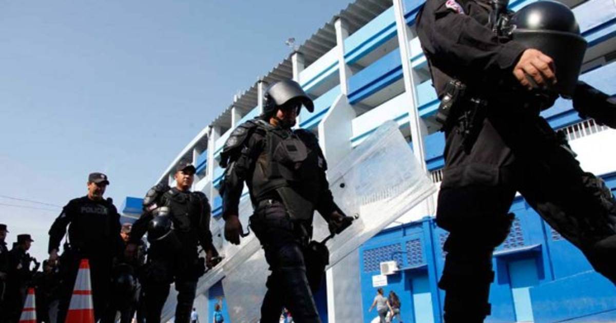 Más de 650 elementos de la Policía Nacional Civil salvadoreña y otras unidades resguardaran el interior y exterior del estadio Cuscatlán para el encuentro El Salvador- Honduras.