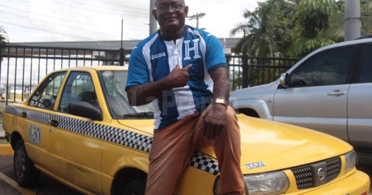 | El taxista panameño con la camiseta de la selección hondureña.