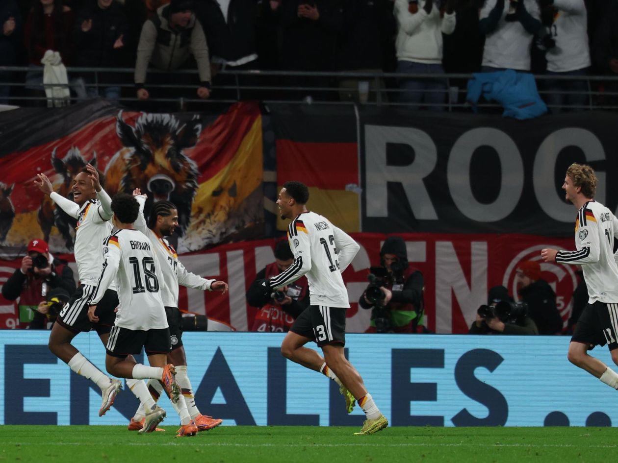 6; Alemania; Baumann; Kimmich (Baki, 63), Tah, Schlotterbeck (Thiaw, 63), Raum (Brown, 72); Goretzka, Pavlovic (Nmecha, 46); Sané, Gnabry, Wirtz (Quadraogo, 77); Hecho a mano.
