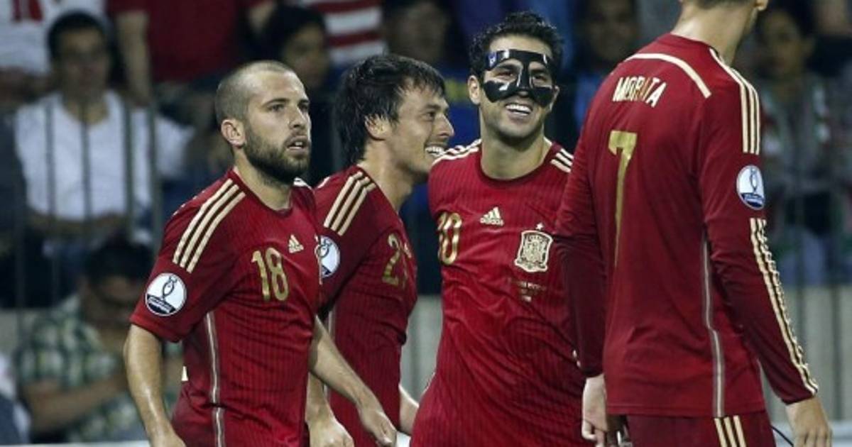 1 - España: Iker Casillas, Juanfran, Piqué, Sergio Ramos, Jordi Alba, Busquets, Cesc (Isco, m.74), Cazorla, Silva (Bernat, m.85), Pedro (Vitolo, m.65) y Morata.