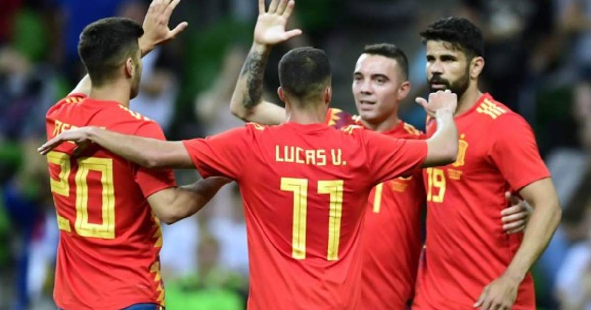 1 - España: De Gea; Odriozola (Nacho, m.46), Sergio Ramos, Piqué, Jordi Alba (Iago Aspas, m.); Busquets, Thiago (Koke, m.46); Iniesta, Isco (Lucas Vázquez, m.46), Silva (Asensio, m.60); y Rodrigo (Diego Costa, m.60)