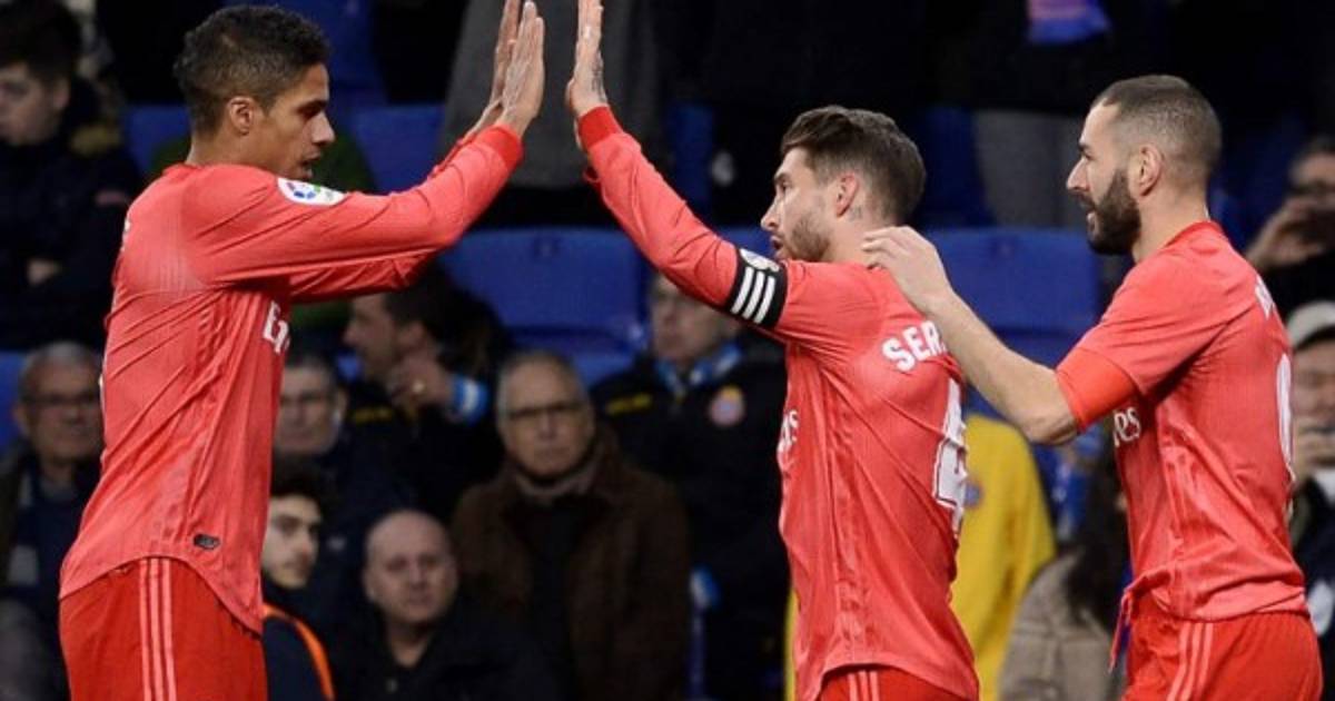 Un doblete de Karim Benzema y los tantos de Sergio Ramos y Gareth Bale permitieron al Real Madrid ganar este domingo por 4-2 en campo del Espanyol (15º), con lo que el equipo blanco mantiene la tercera posición que le había arrebatado provisionalmente el Sevilla.
