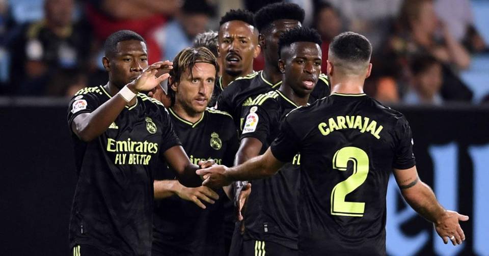 Goles: 0-1 Benzema (p), min.12; 1-1 Aspas (p), min.22; 1-2 Modric, min.41; 1-3 Vinicius, min.55; 1-4 Fede Valverde, min.66