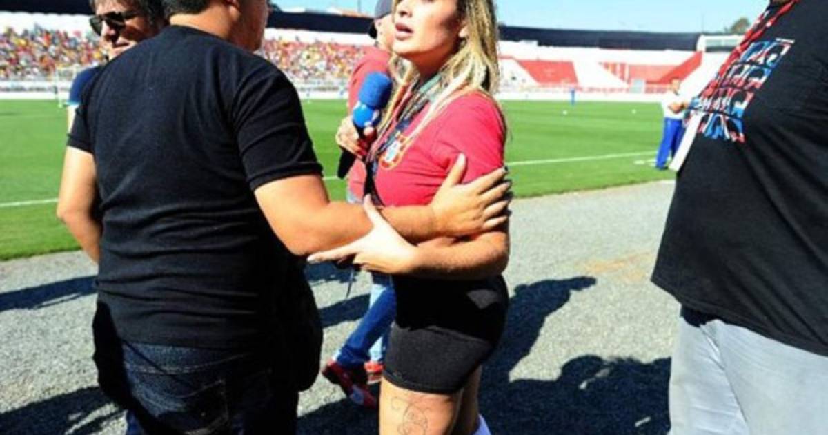 Pero rodeada de varios fotógrafos, los agentes de seguridad le pidieron que saliera y la escoltaron hasta la puerta del estadio Moisés Lucarelli en Campinas, en el estado de Sao Paulo (sureste).