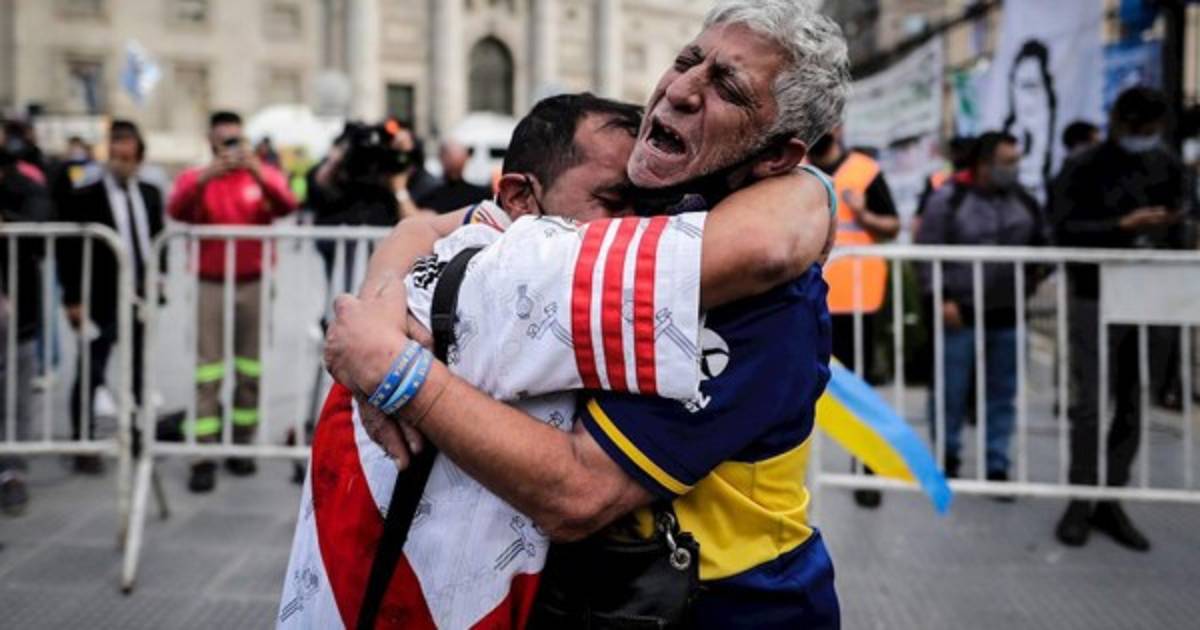 Hinchas de los equipos argentinos, vestidos con sus respectivas camisetas, dejaron de lado la rivalidad para despedir juntos en distintos estadios del país al astro del fútbol Diego Maradona, que falleció este miércoles a los 60 años.