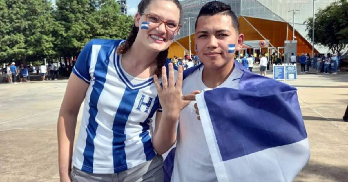 El amor está en el aire. Otra bella historia ha sido descubierta durante la Copa Oro 2021. Así como el aficionado mexicano dio a conocer su amorío con una estadounidense ante las cámaras televisivas el miércoles en el duelo de México ante Guatemala, este sábado lo hizo un hincha catracho en la previa del Honduras-Panamá en Houston.