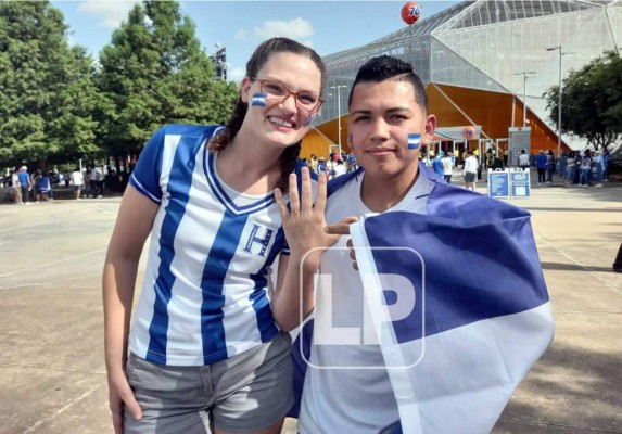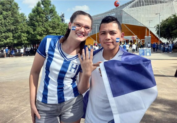 En las afueras del estadio BBVA Compass, sede del partido entre hondureños y panameños, un porteño de 26 años llegó junto a su prometida de 22 años oriunda de Luisiana, Monroe, para presenciar el partido de la Bicolor, pero no sin antes compartir con Grupo OPSA su hermosa historia.