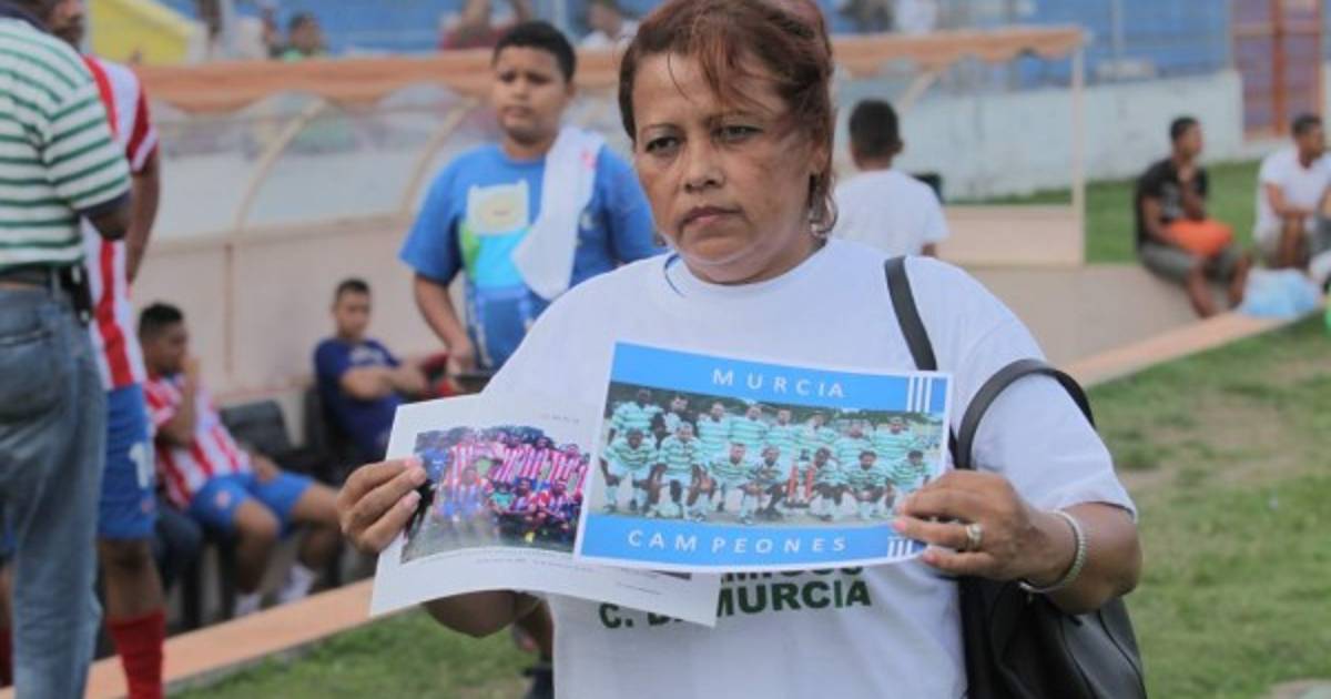 | Jugadores del Vida y del Deportivo Murcia posan con los familiares del exjugador de la Selección Nacional de Honduras.