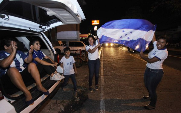 Al grito de Honduras, Honduras, cientos de aficionados con sus familias portando la bandera de las cinco estrellas coparon las calles con largas caravanas de vehículos.