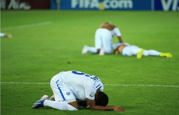 Sweden's players celebrate at the end of the FIFA World Cup 2018 qualification football match between Italy and Sweden, on November 13, 2017 at the San Siro stadium in Milan. Italy failed to reach the World Cup for the first time since 1958 on Monday as they were held to a 0-0 draw in the second leg of their play-off at the San Siro by Sweden, who qualified with a 1-0 aggregate victory. / AFP PHOTO / Miguel MEDINA