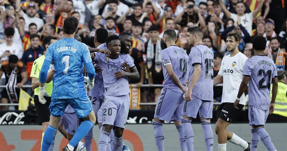 El Valencia, que vio como un testarazo de Vinícus se marchó alto, aprovechó la falta de tensión competitiva de los madridistas tras ver finalizada su temporada al caer en semifinales de la Liga de Campeones y se quedó cerca de hacer el segundo justo antes del descanso en una doble oportunidad de Javi Guerra que Courtois solventó de manera brillante.