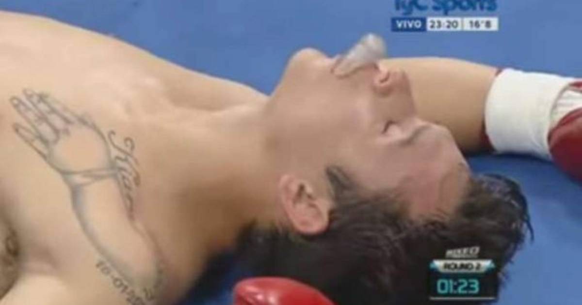| Momento en que Marcos Martínez cayó al ring.