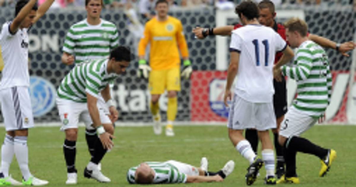 El centrocampista del Celtic Glasgo, Dylan McGeouch, tuvo que abandonar el terreno de juego del estadio Lincoln Financial Field en camilla por un golpe recibido durante el encuentro de pretemporada contra el Real Madrid.