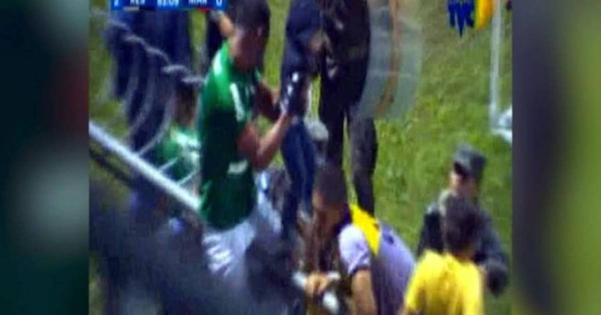 Las cámaras de televisión captaron el momento en el que futbolistas del Marathón ayudan a sacar a algunos niños que estaban en el lado de preferencia. Uno de los jugadores era el brasieño Caue Fernandes.