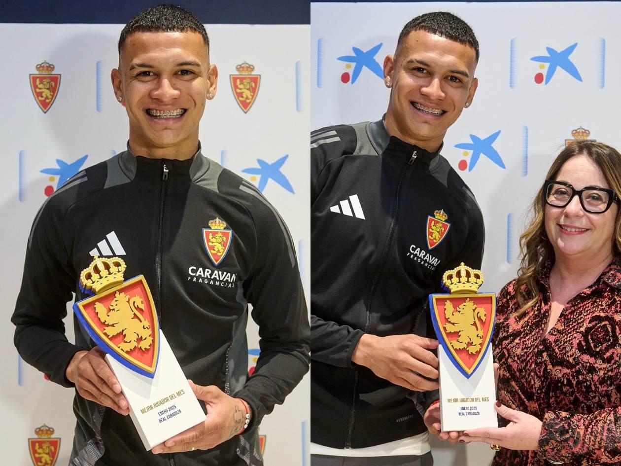 ¡Qué bonito es lo bonito! Kervin Arriaga, volante de contención de Real Zaragoza, recibió su primer premio con los colores del conjunto “Maño”, club por el que fichó en el mercado de invierno de la segunda división de España.