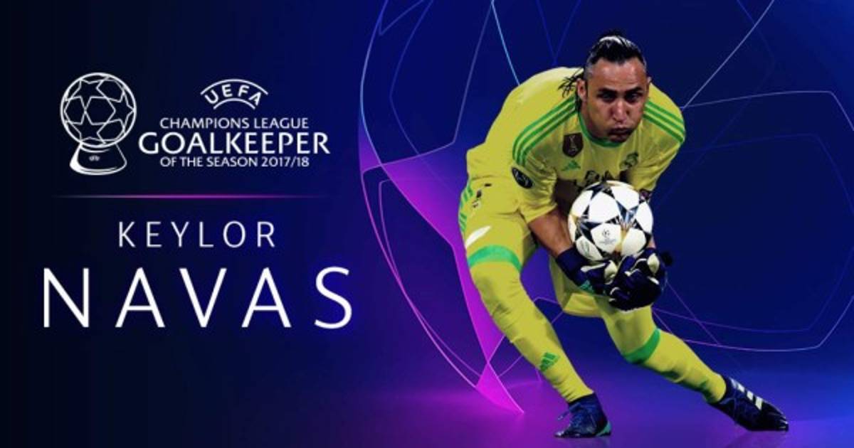 El guardameta costarricense del Real Madrid, Keylor Navas, fue elegido por la UEFA mejor portero de la temporada 2017-2018 por delante del brasileño Alisson Becker, exportero de la Roma ahora en el Liverpool, y del italiano Gianluigi Buffon, que dejó el Juventus tras 17 años para fichar por el PSG.