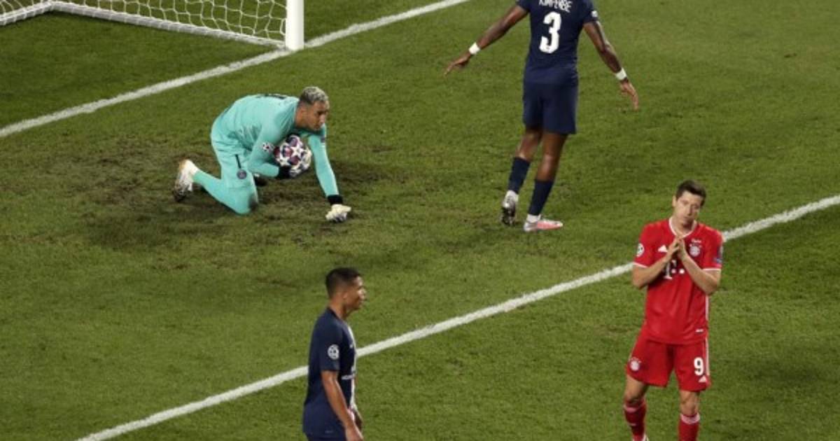 El portero costarricense Keylor Navas evitó que le polaco Robert Lewandowski abriera el marcador en la primera parte de la final de la Champions League entre París Saint Germain vs Bayern Múnich.