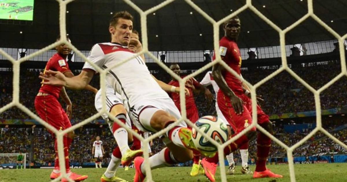 Mario Götze en el minuto 52 adelantó a los alemanes, pero Andre Ayew (m.54) y Asamohad Gyan (m.63) remontaron, hasta que Klose, de 36 años, entró a los 69 minutos para apagar el incendio y a los 71 empató en un córner.