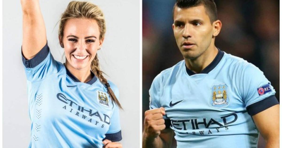 La muchacha en cuestión, de 24 años, delantera del City y de la selección femenina de Inglaterra, rubia... que con su encanto (como se puede vislumbrar) se llevó la mirada de todos, inclusive la del futbolista argentino.
