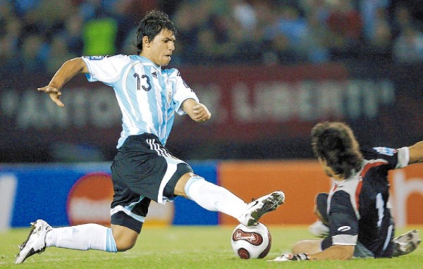 Su olfato de artillero, gambeta endiablada y dotes de niño prodigio le abrieron enseguida un espacio en las selecciones juveniles albicelestes, participando en el Mundial Sub-20 de Holanda, junto a su amigo Lionel Messi, en el título juvenil que repitió dos años después en Canadá 2007, ya como capitán.