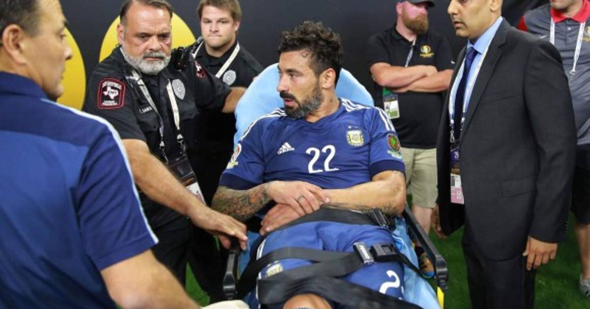 El jugador argentino Ezequiel Lavezzi sufre una luxofractura en el codo izquierdo tras su caída al tropezar con una valla publicitaria en la goleada 4-0 sobre Estados Unidos correspondiente a la semi de Copa América y tendrá que ser operado.