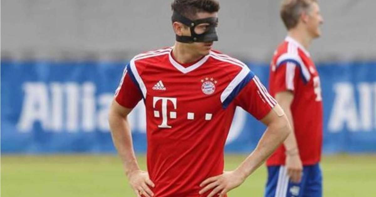 El delantero polaco Robert Lewandowski volvió hoy a los entrenamientos del Bayern con una máscara ortopédica después de las fracturas de tabique y mandíbula que sufrió la semana pasada en la semifinal de la Copa de Alemania ante el Borussia Dortmund, informó el club bávaro.
