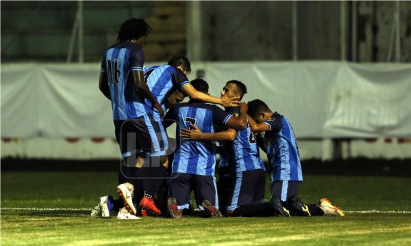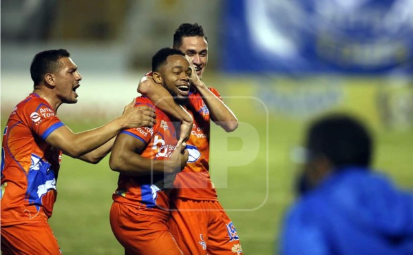 Los mineros celebrando el 0-2 de Jesse Moncada.