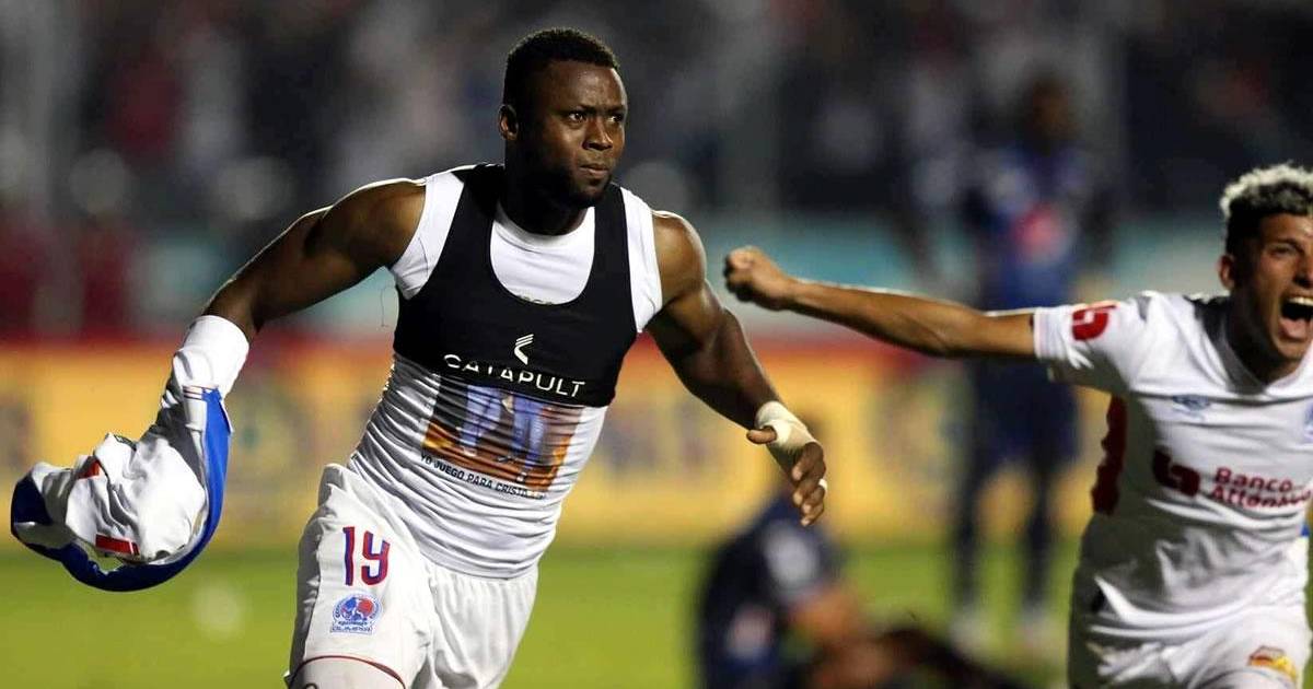 La celebración de Jerry Bengtson tras su gol para el empate de Olimpia. Foto: Mauricio Ayala