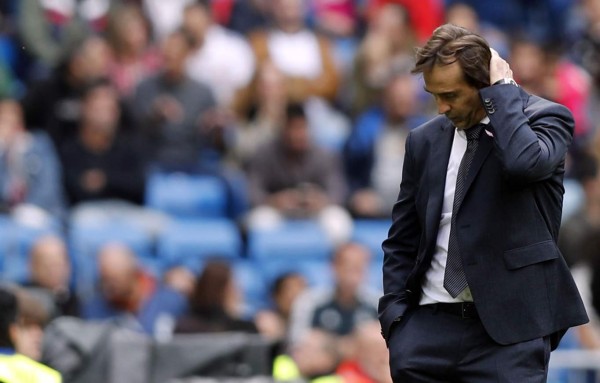 Lopetegui se lamenta por la derrota del Real Madrid ante Levante. Foto EFE