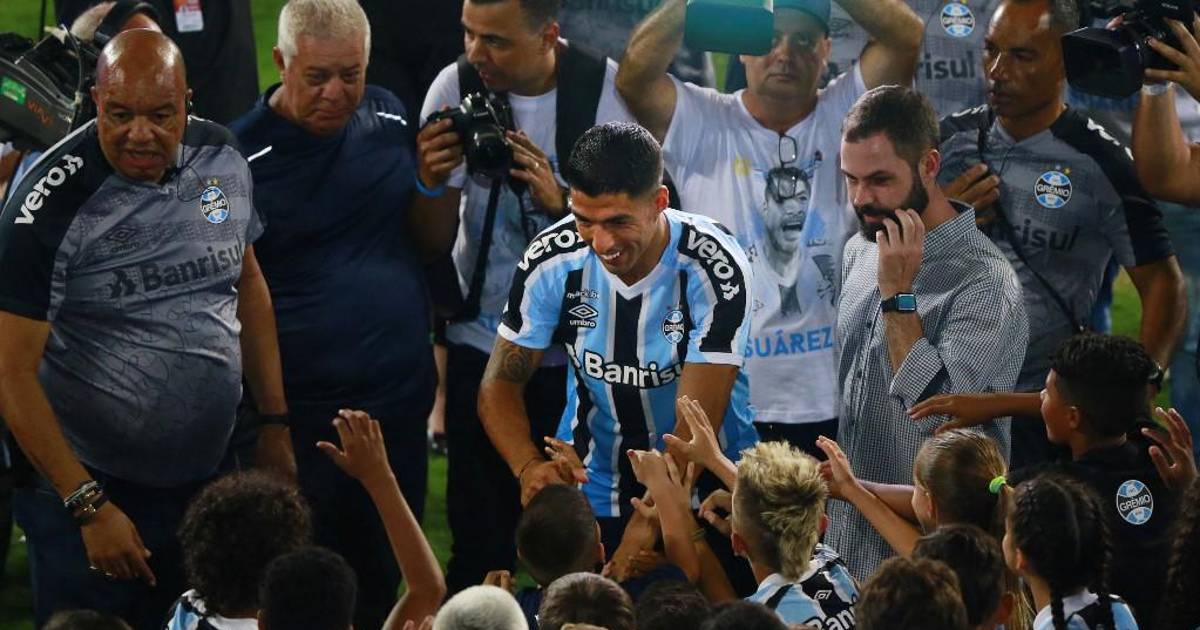 Suárez fue presentado este miércoles a los aficionados en Porto Alegre, que coparon el estadio del club brasileño para darle la bienvenida.Tras ser presentado ante más de 40.00 aficionados en el Arena Gremio, el delantero comparó su llegada al Gremio con la que produjo su fichaje por Atlético de Madrid.