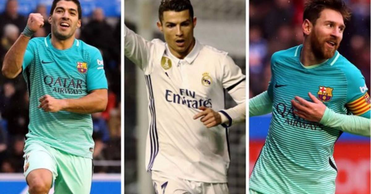 El delantero uruguayo del Barcelona, Luis Suárez, vuelve a liderar en solitario la clasificación de goleadores de la Liga española tras alcanzar 18 dianas con su doblete al Alavés, en un encuentro en el que también marcó Lionel Messi, y Cristiano Ronaldo lo hizo para el Real Madrid para no perder el tren.