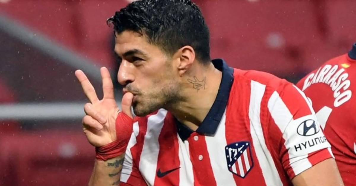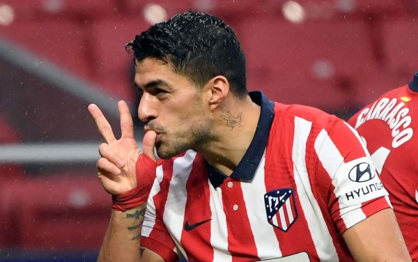 Luis Suárez al momento de abrir el marcador para el Atlético.
