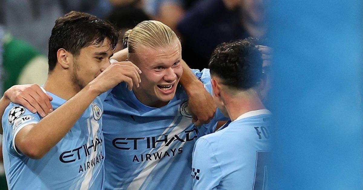 Tijjani Reijnders probó suerte desde lejos en el minuto 9 y poco después Erling Haaland cabeceó desviado a la salida de un córner