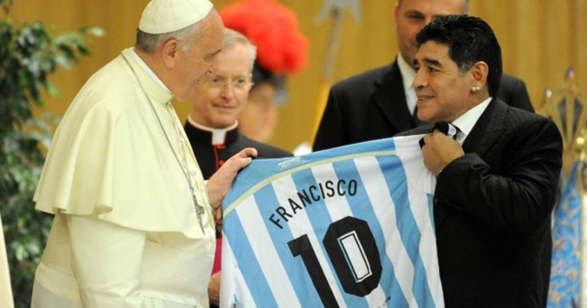 'Lo voy a llamar al Papa para que en una oración rece por vos. Que nos saque este puñal que tenemos todos adentro', dijo Maradona en un video grabado en Dubai y transmitido durante un programa del canal TN en el que participó el mediocampista que jugaba en Newcastle de Inglaterra.