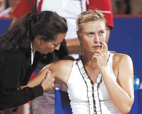 La rusa se agravó de una bursitis recurrente durante el maratónico partido de casi tres horas que le ganó la noche del miércoles en segunda ronda a la polaca Marta Domachowska por 7-5, 5-7, 6-2. La reina del tenis también será baja en los Juegos Olímpicos de Beijing 2008. 'En las últimas semanas he tratado de buscar una solución para evitar que se agrave esta lesión que comenzó en el torneo de Indian Wells, y aún no la he encontrado', dijo Sharapova.