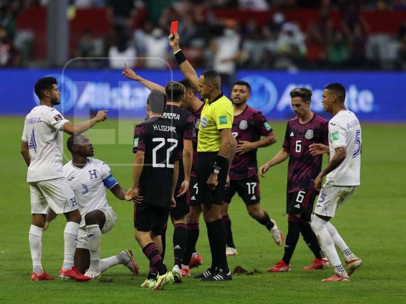 Maynor le cometió una dura entrada al delantero mexicano Raúl Jiménez cuando el atacante se aprestaba a lanzar un contragolpe e inmediatamente vio la cartulina roja.