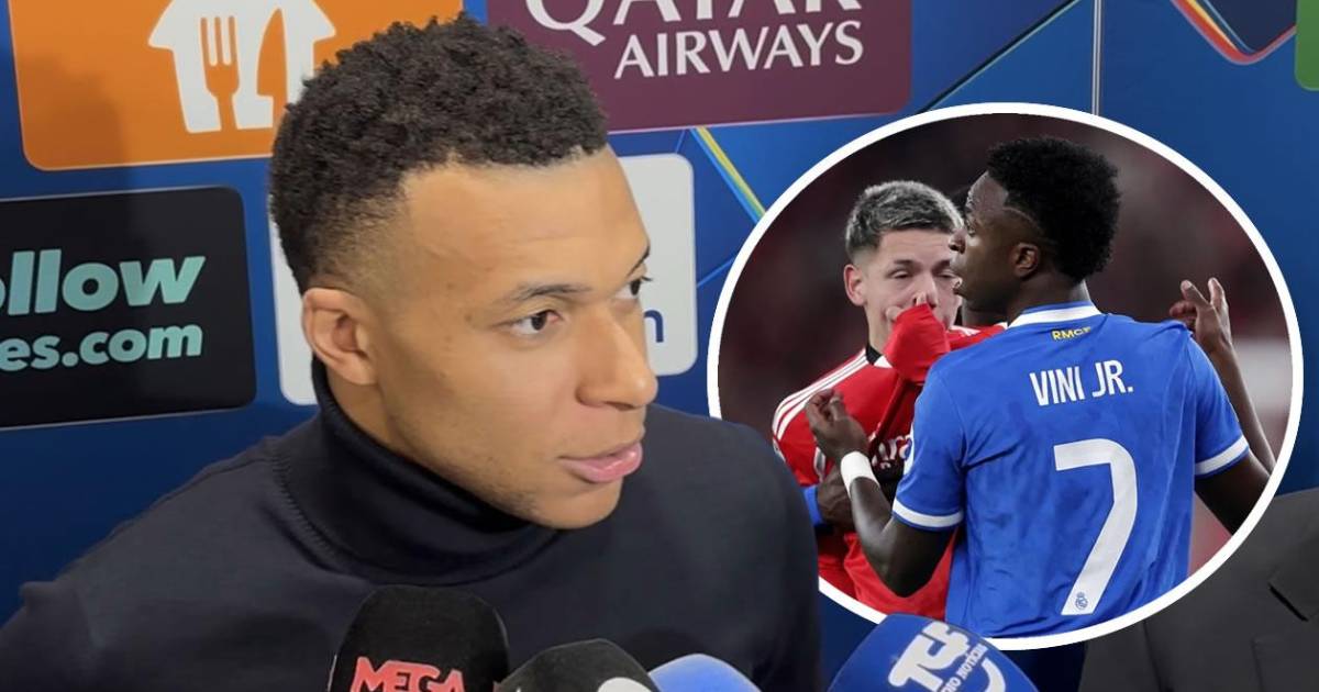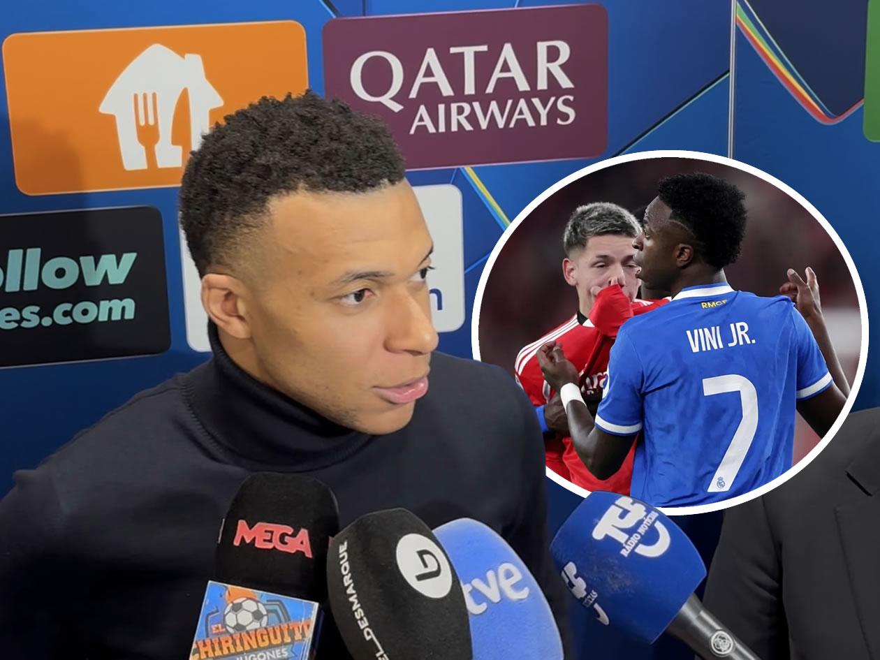 "Yo sé todo. Lo que he visto es muy claro, el número 25 del Benfica, no quiero decir su nombre, no lo merece, le ha dicho cinco veces a Vini que eres un mono. Cada uno da su opinión pero nosotros damos la información y todos tenemos que ir en la misma dirección. No se puede aceptar este tipo de actitud. Es maravilloso jugar la Champions pero dar este tipo de imagen es terrible para el fútbol mundial", denunció Mbappé en la zona mixta del estadio Da Luz de Lisboa.
