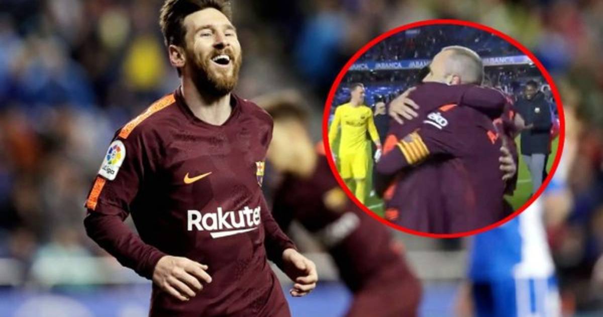 Messi se abrazó con Iniesta al final del partido en Riazor contra Deportivo La Coruña.