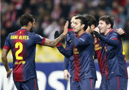 BARCELONA: Valdés; Dani Alves, Mascherano, Piqué, Alba (Montoya, m.86); Xavi (Song, m.82), Busquets, Iniesta, Fábregas; Messi y Pedro (Deulofeu, m.85).
