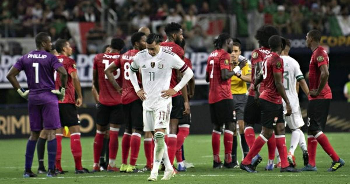 La escuadra trinitaria salió al campo con una actitud muy precavida, con 10 hombres ubicados por detrás de la pelota. En esos primeros minutos, el equipo mexicano intentó abrir la cancha por los costados con Jesús Corona por derecha e Hirving Lozano por izquierda.