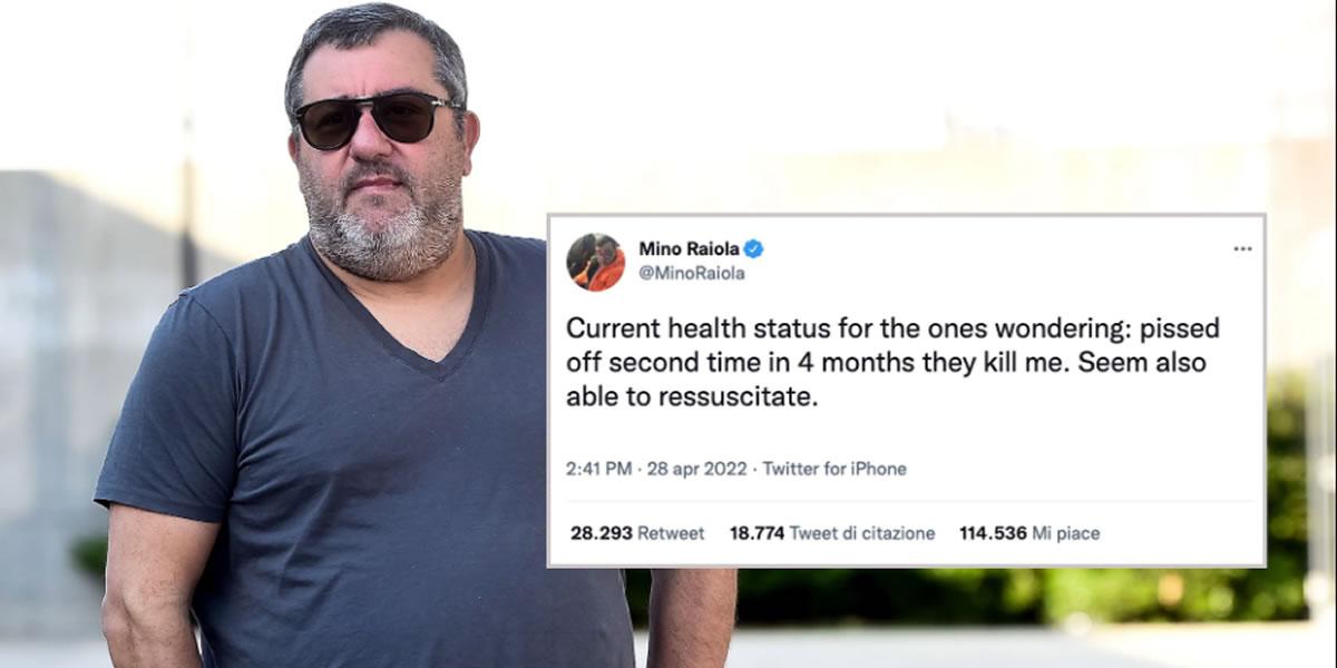“Estado de salud actual para los que se preguntan: enfadado porque por segunda vez en cuatro meses me han matado. También parecen capaces de resucitarme”, dijo Raiola en su perfil oficial de Twitter.